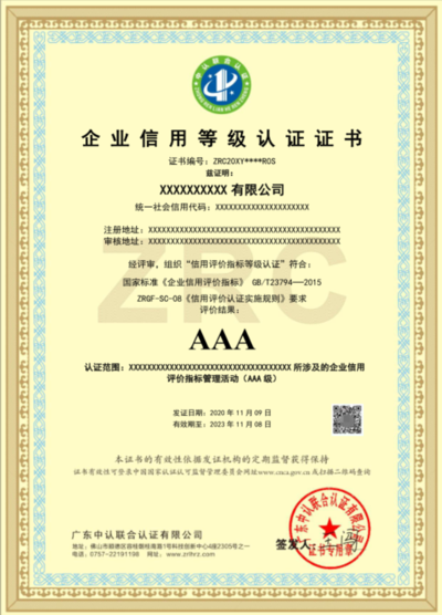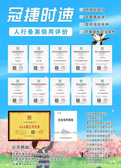 企业信用AAA等级证书-人行备案(10证1牌1报告)